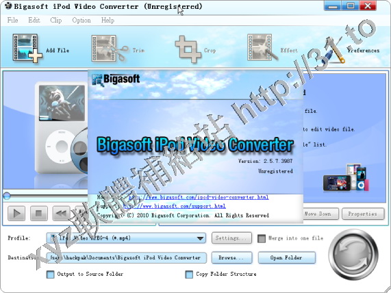 • Bigasoft iPod Video Converter v3.7.45.4933 英文正式版(媒體轉換軟體)